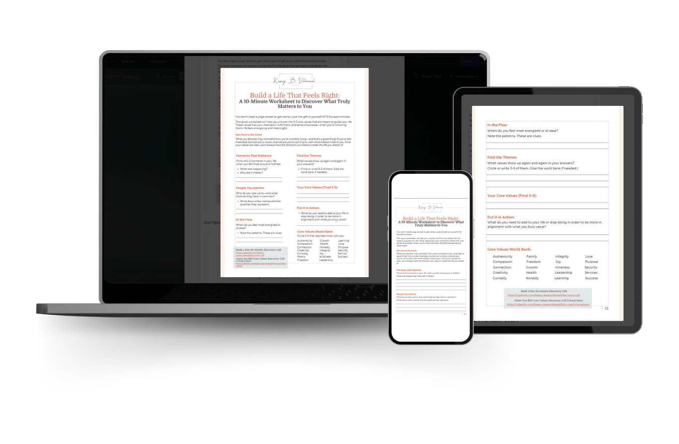 This quick, free worksheet helps you uncover the core values quietly driving your energy, emotions, and fulfillment—so you can finally start creating a life that feels like yours.